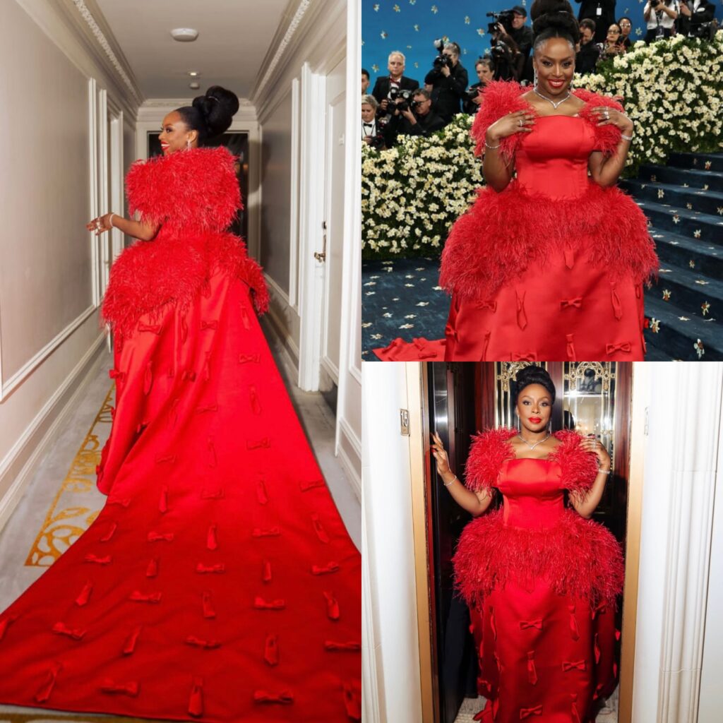 Nigerian author and cultural icon Chimamanda Ngozi Adichie made a powerful debut at the Met Gala in a bright red, feathered gown by Prabal Gurung. As a member of the 2025 host committee, her presence was more than symbolic, it was a bold statement on African visibility in global culture. Her ensemble echoed her dedication to storytelling and reclaiming African narratives on the world stage.