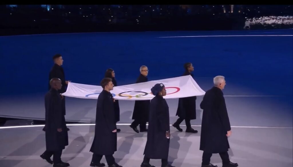 She carried the Olympic flag alongside other distinguished honorees, including Tadatoshi Akiba of Japan, former Mayor of Hiroshima and a leading advocate for nuclear disarmament, and Rebeca Andrade of Brazil, the country’s most decorated Olympic athlete and a global symbol of resilience.