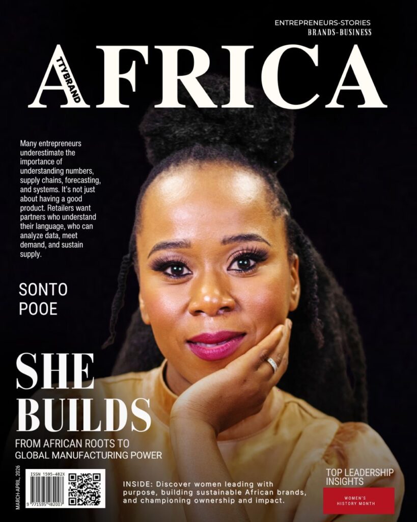 According to Betty Buzo, Editor-in-Chief of TTYBrand Africa Magazine, featuring Sonto Pooe on the cover of this special edition reflects the publication’s commitment to spotlighting African entrepreneurs who are building industries while uplifting communities.