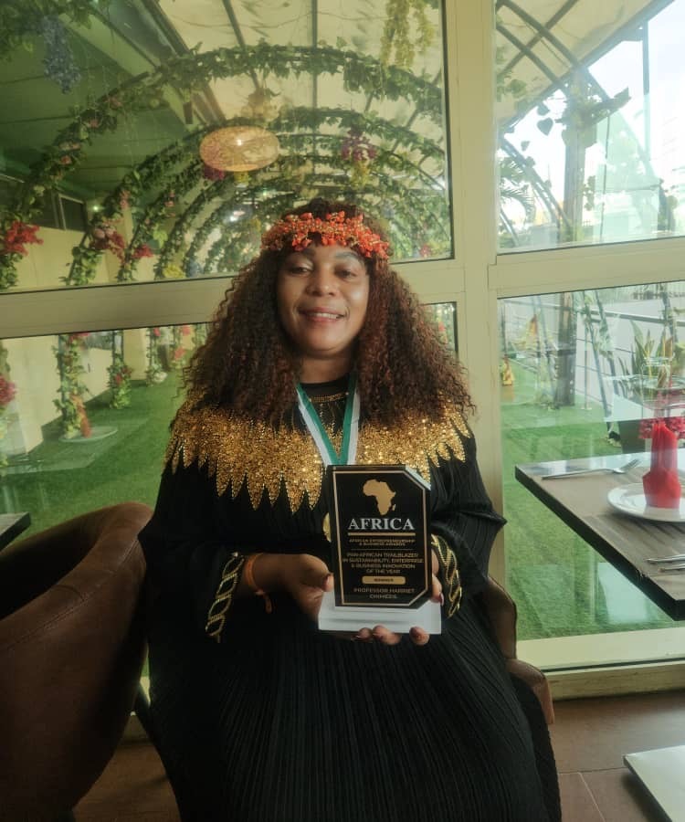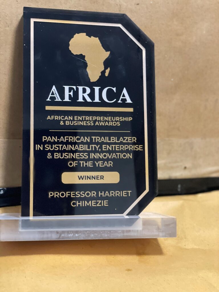 Professor Harriet Chimezie has been honoured as the Pan-African Trailblazer in Sustainability, Enterprise & Business Innovation 2025 at the 2025 African Entrepreneurship & Business Summit (AEBS), in recognition of her far-reaching leadership in advancing sustainable development, enterprise growth, and responsible business innovation across Africa.
